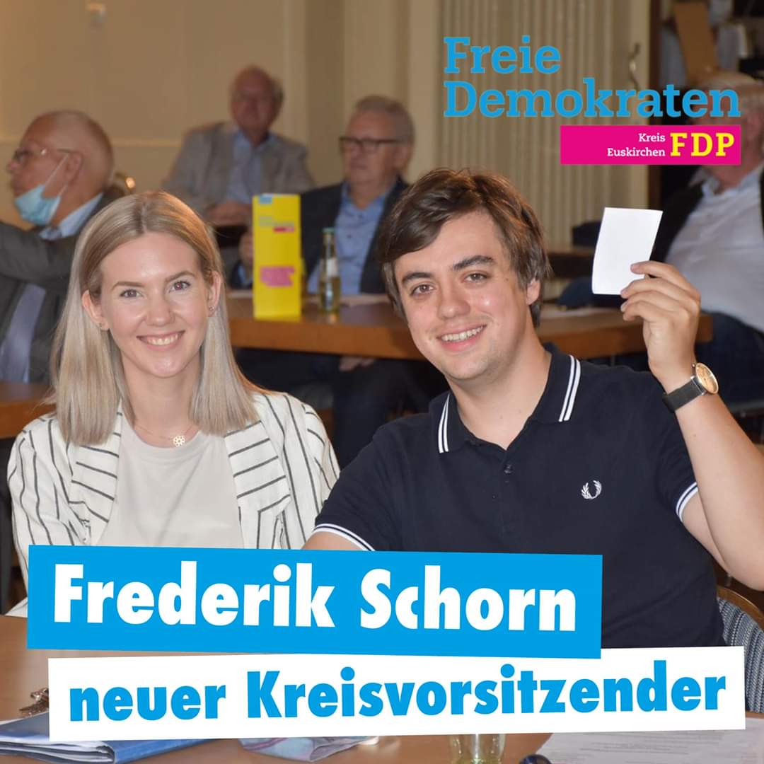 Gestern fand unser Kreisparteitag in Euskirchen statt. Dabei musste ein neuer Kreisvorsitzender gewählt werden. Zur Wahl stellte sich Frederik Schorn, der bereits viele Jahre als Stellvertretender Vorsitzender für den Kreisverband aktiv war. Schorn wurde mit 100% der Stimmen zu unserem neuen Kreisvorsitzenden gewählt. Er dankte in seiner Rede seinem Vorgänger Peter Rauw für seine gute und langjährige Arbeit für den Kreisverband.